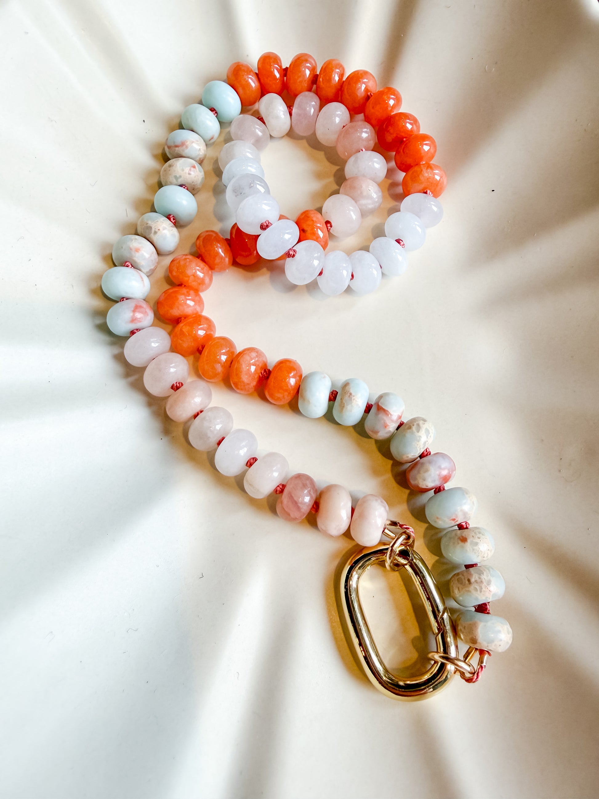 Jasper Hand Knotted Necklace with Charm Holder Clasp- Terra Rose